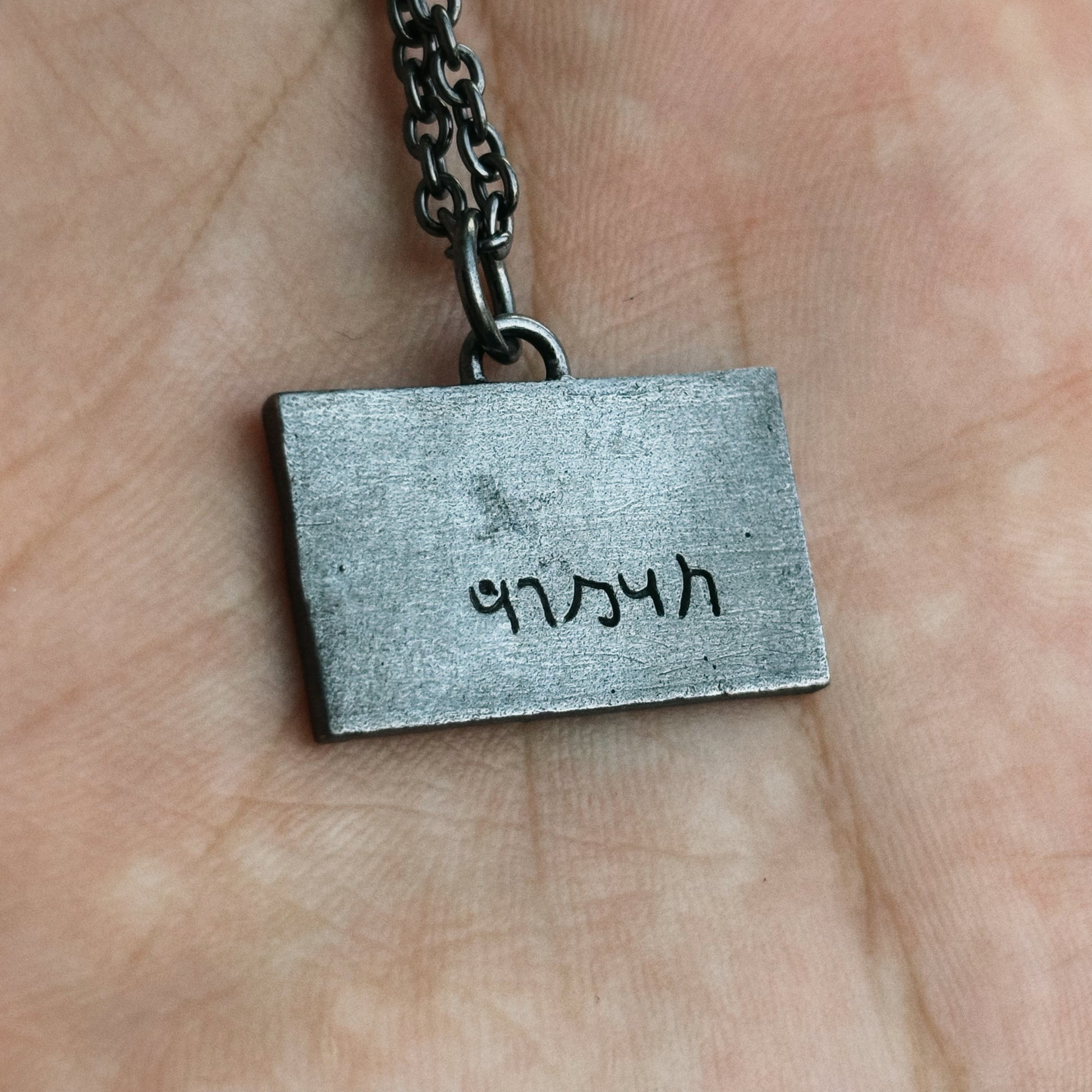 This necklace is inspired by the ruins in the ancient city of Palmyra and is part of our ongoing “Homeland” Collection, created to honor the Arab world’s rich heritage and culture. The piece is completely made by hand using the lost-wax method and is based on The Great Colonnade and the Monumental Arch in Palmyra. The back of the pendant features the word “Palmyra” engraved in Palmyrene Aramaic.