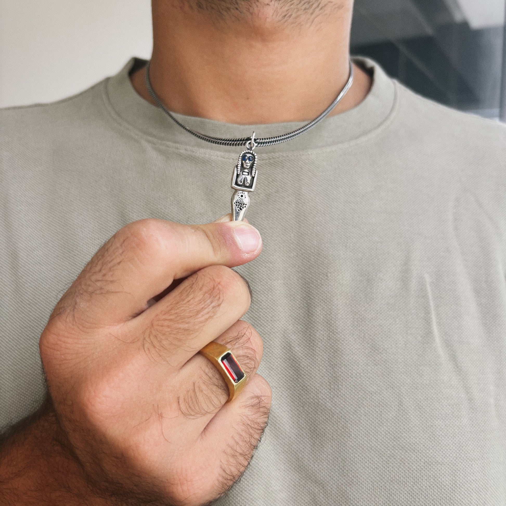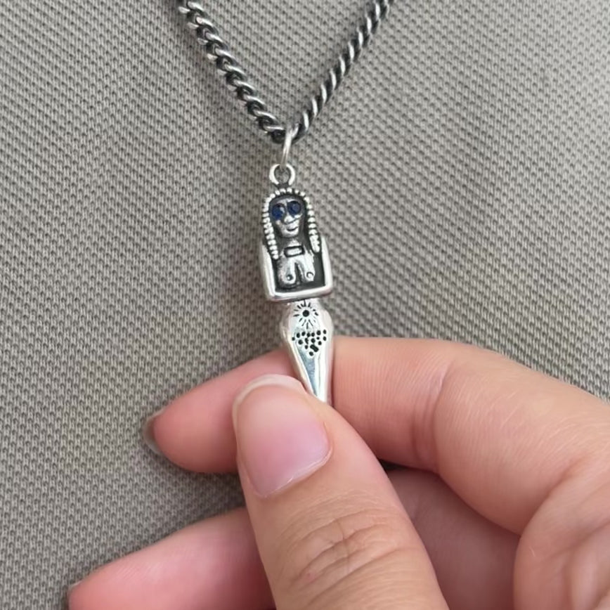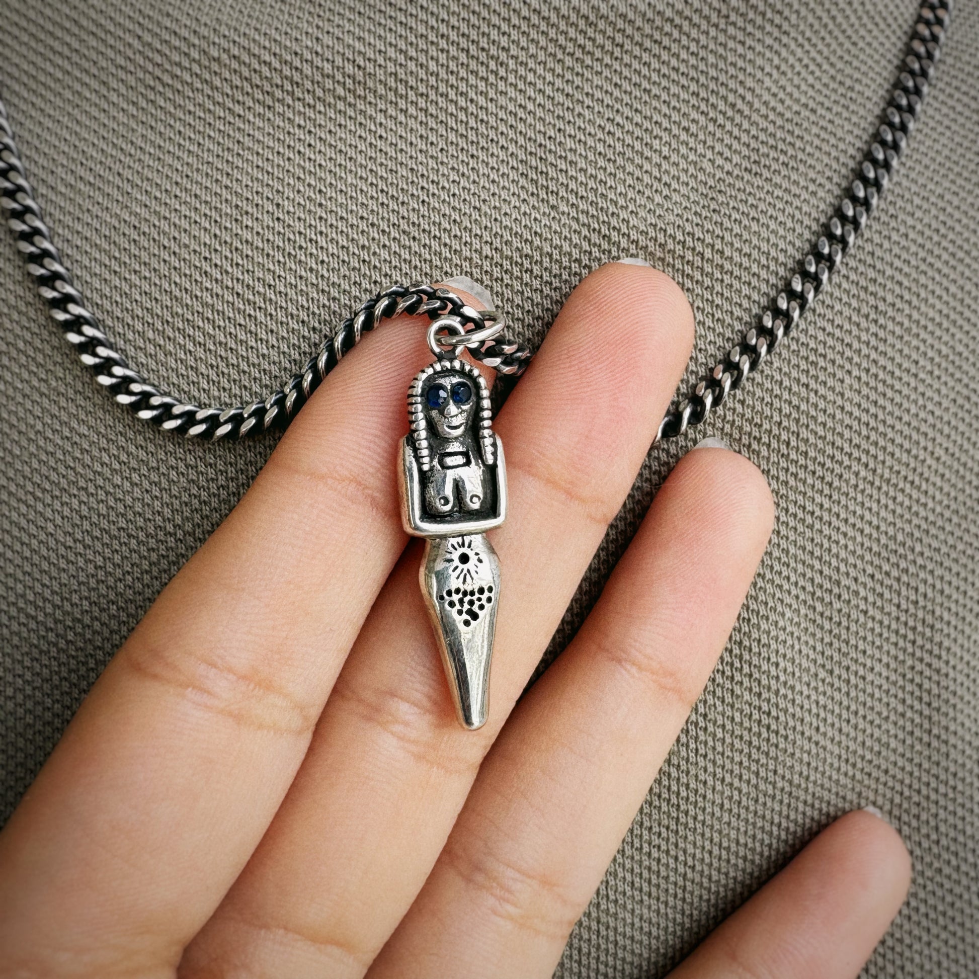 This pendant is inspired by a rare bone figurine from Ancient Egypt, currently housed at the British Museum. The original dates back to approximately 3700–3500 BC and is associated with the Amratian Period, one of the earliest phases of Egypt’s rich artistic tradition.
