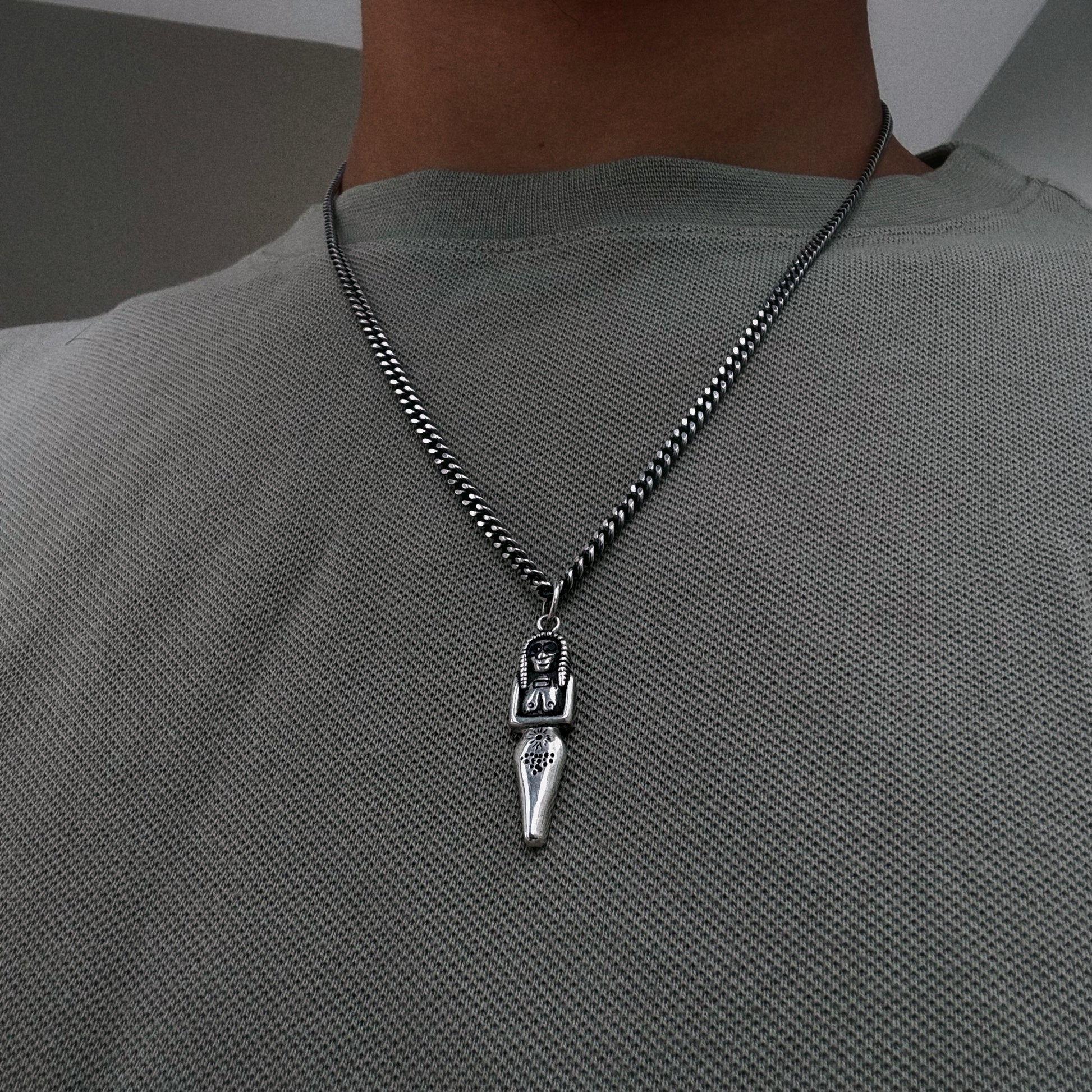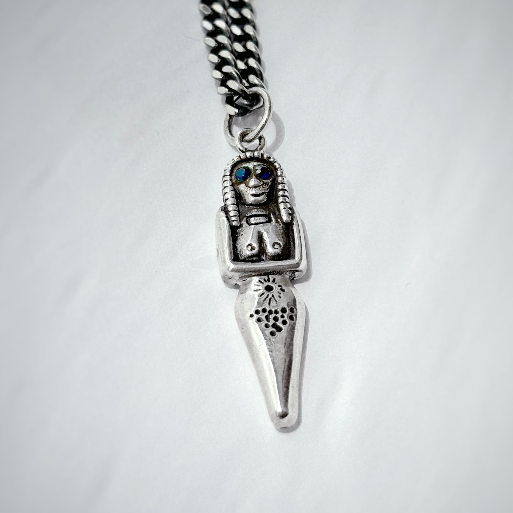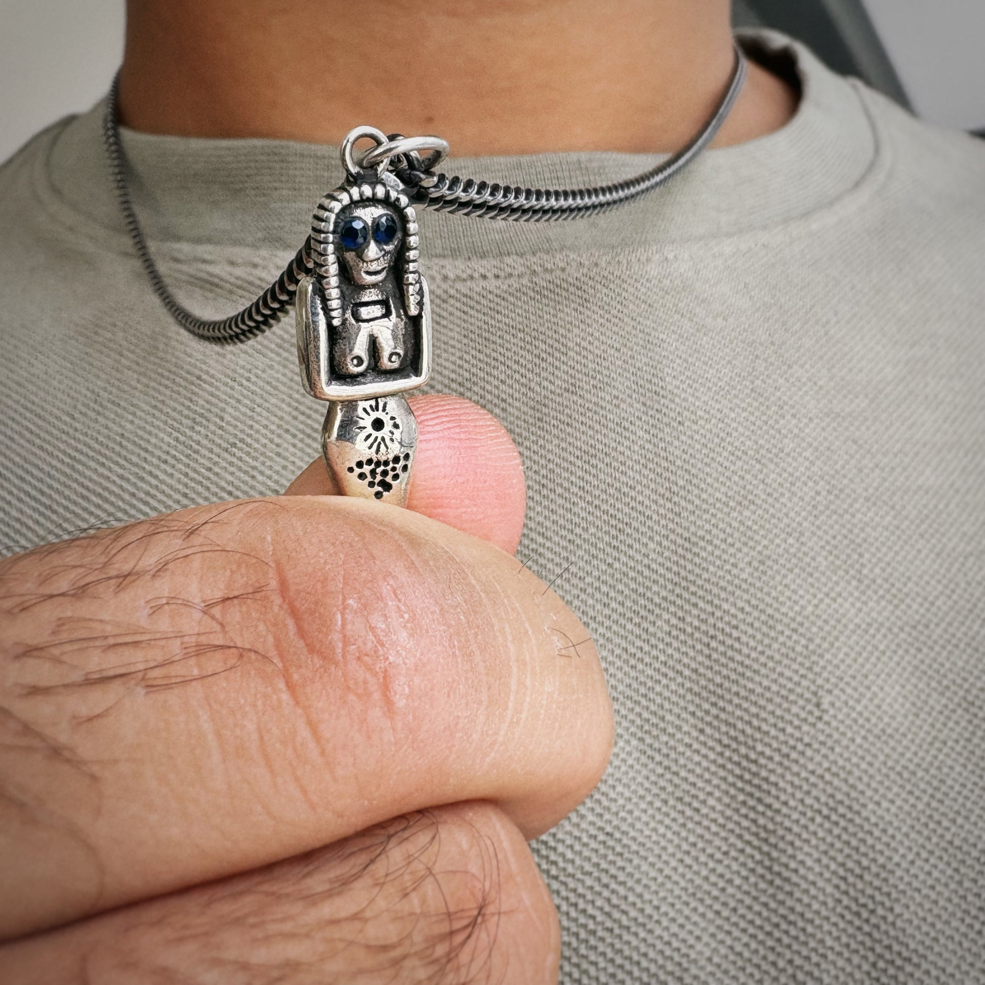 This pendant is inspired by a rare bone figurine from Ancient Egypt, currently housed at the British Museum. The original dates back to approximately 3700–3500 BC and is associated with the Amratian Period, one of the earliest phases of Egypt’s rich artistic tradition.