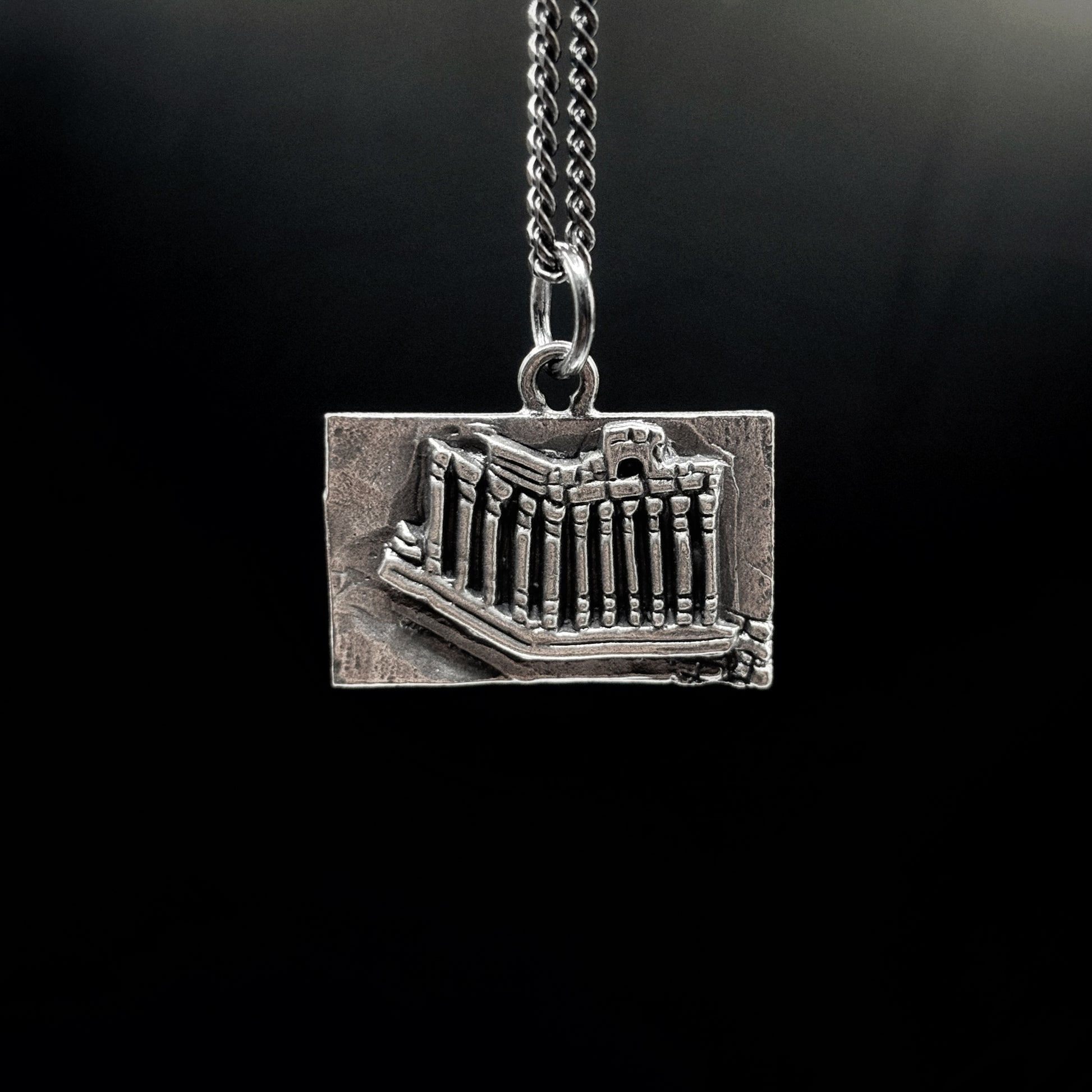 Our Baalbek ruins necklace is part of our ongoing “Homeland” Collection, created to honor the Arab world’s rich heritage and culture. The piece is completely made by hand using the lost-wax method and is based on the Temple of Bacchus in Baalbek, Lebanon. The back of the pendant is engraved with the word "Baalbek" in Phoenician.