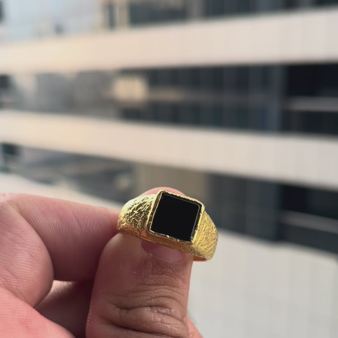This one happens to be a personal favorite of mine. A square signet ring with a black onyx stone set in gold vermeil. Simple and bold. The quintessential statement piece for the modern man.