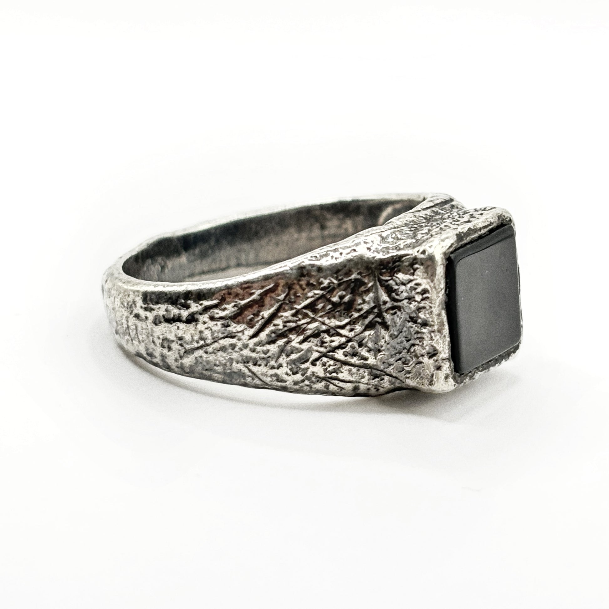 A certified classic that says a lot without being too flashy. A vintage square signet ring with a natural black onyx stone set in solid 925 sterling silver. Simple and bold. The perfect statement piece for the modern man who knows that less is more.