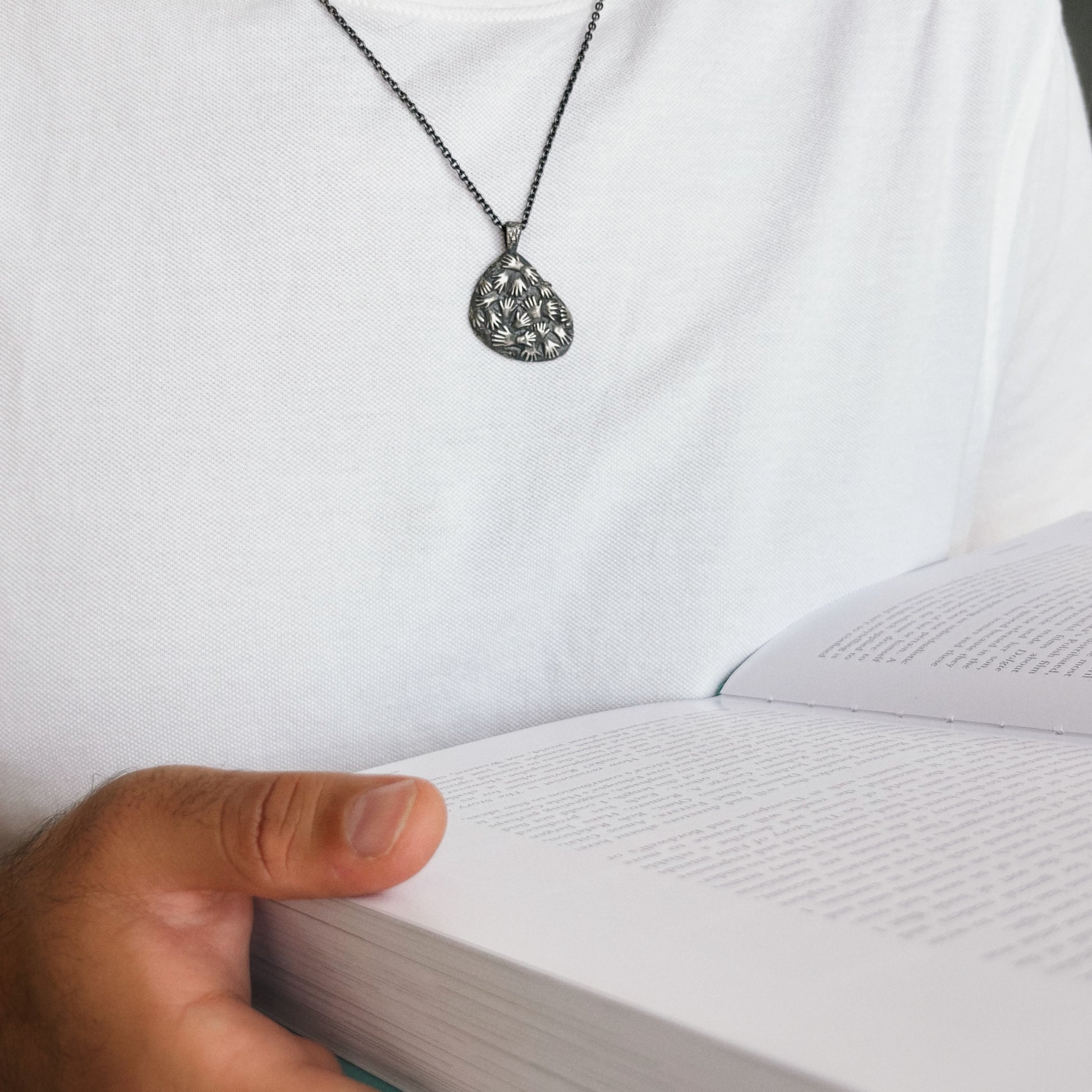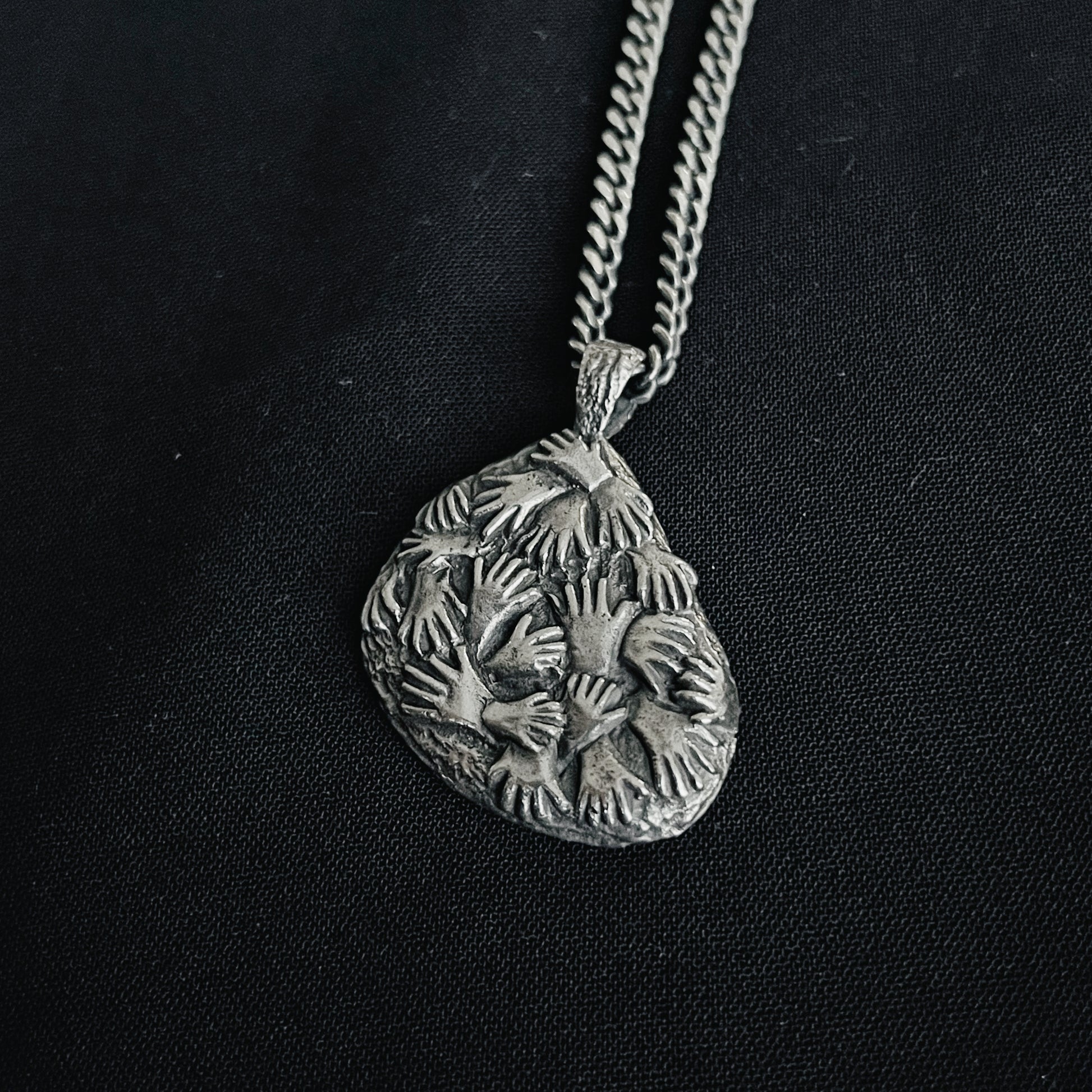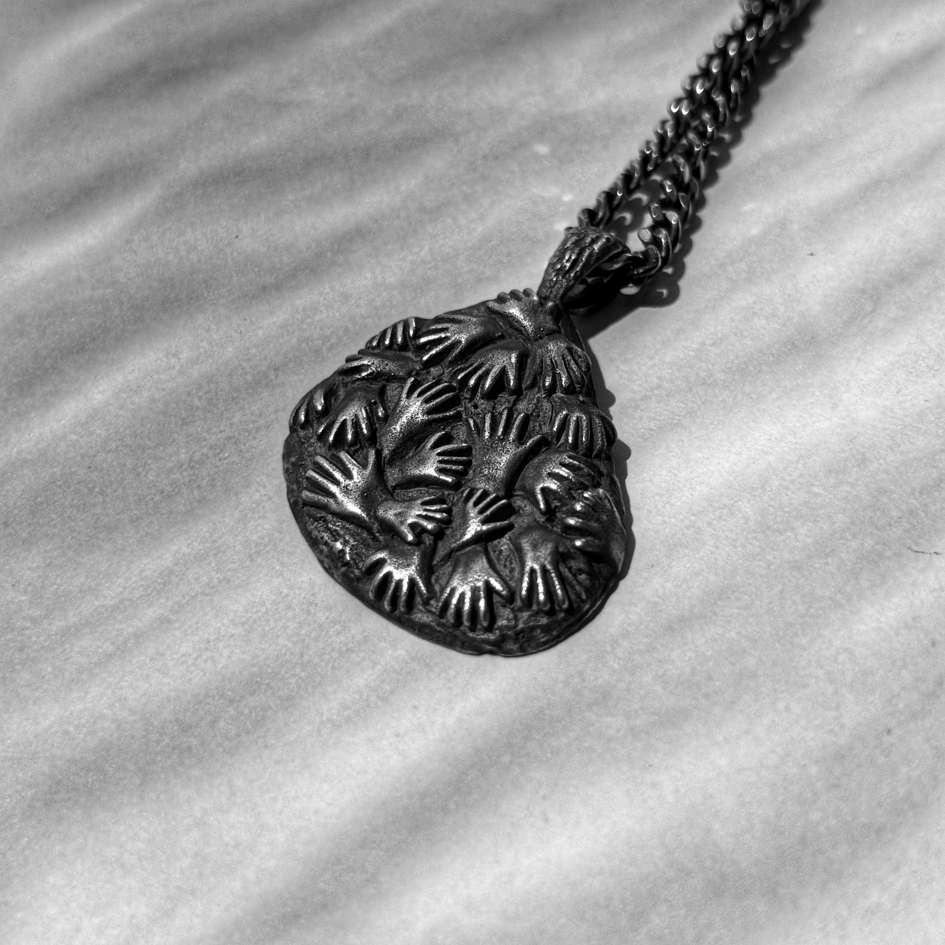 This piece is inspired by the ancient cave art found in Cueva de las Manos — “The Cave of the Hands” — in Argentina. The walls of the cave are covered with hundreds of stenciled handprints, left by some of the earliest inhabitants of South America between 7,300 BC and 700 AD. It is widely recognized as the oldest-known cave art in South America.