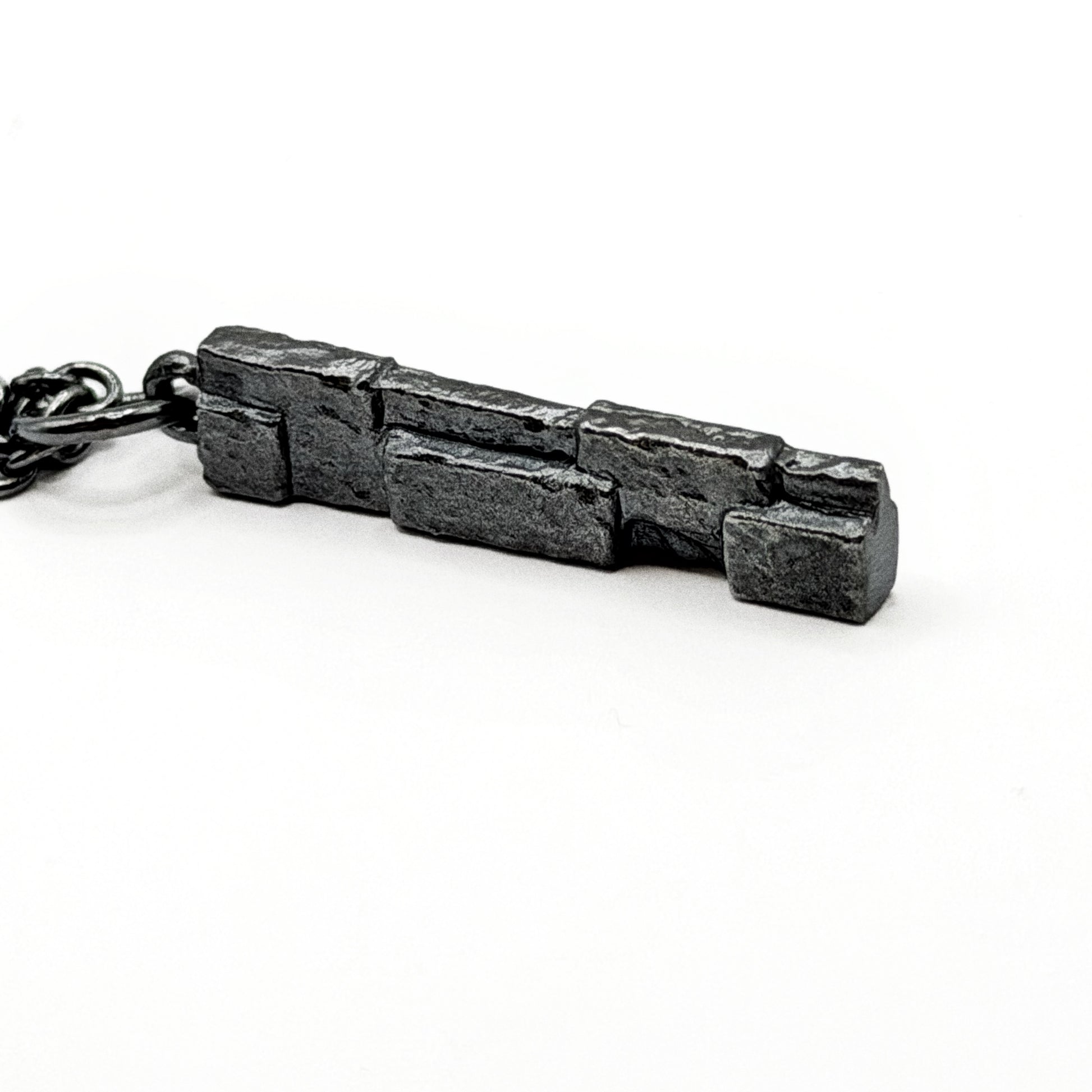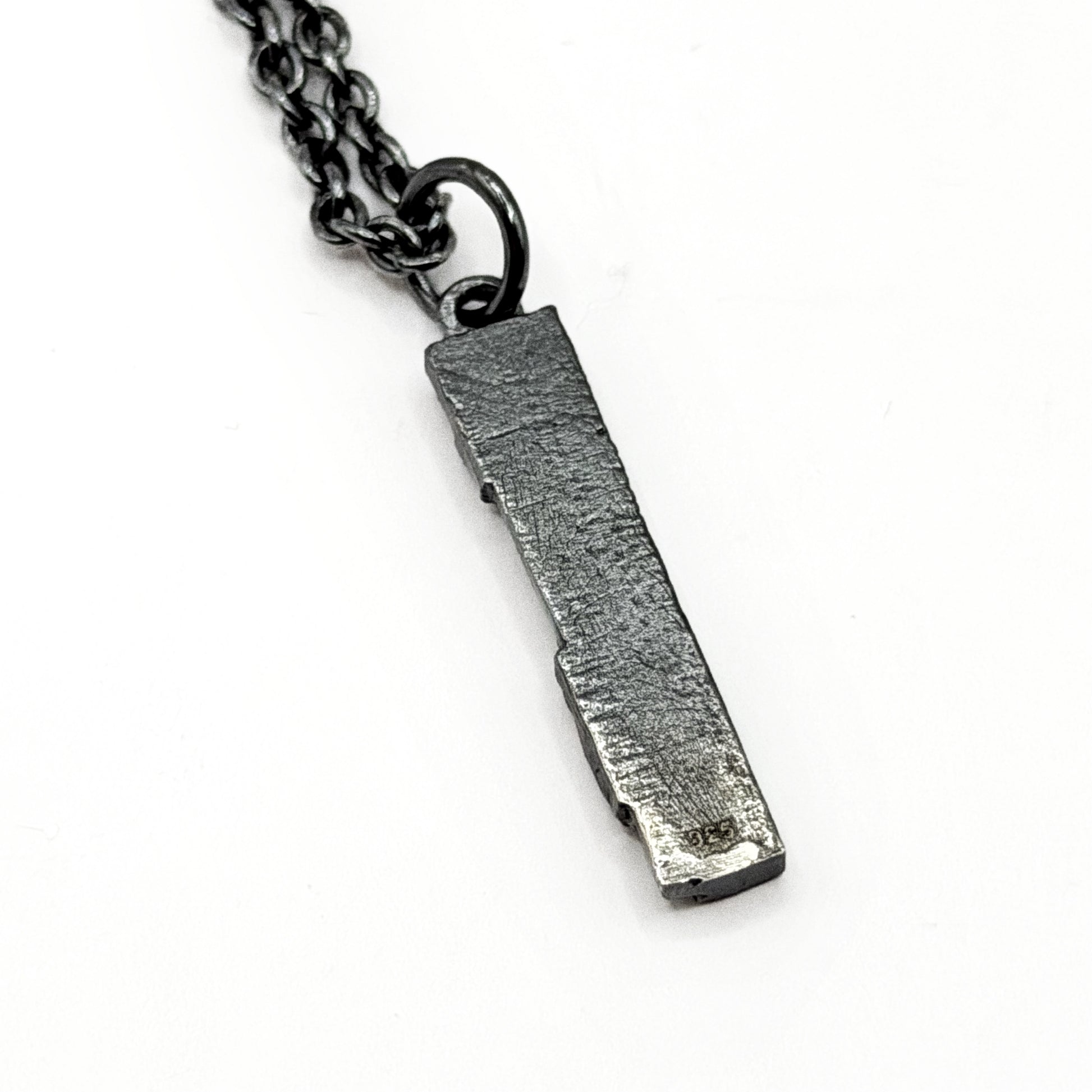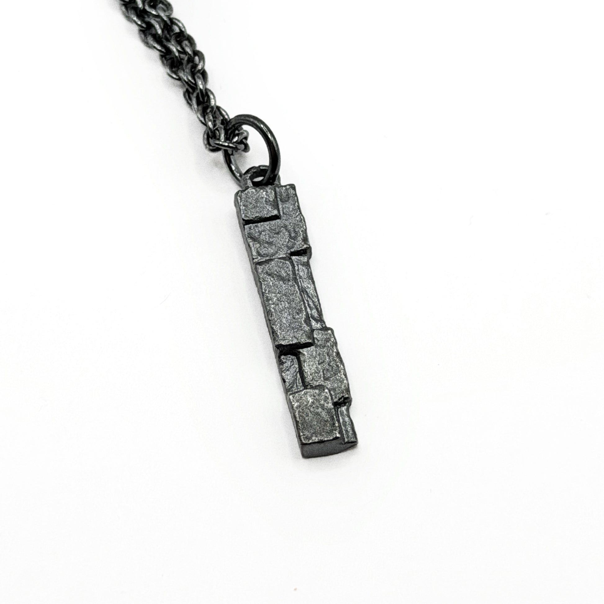 Handcrafted in oxidized 925 sterling silver, this long geometric block necklace encapsulates the art of simplicity. Subtle layers and rough texture bring depth to its minimalist form. This is a piece made to complement any style, whether worn alone or layered with others.