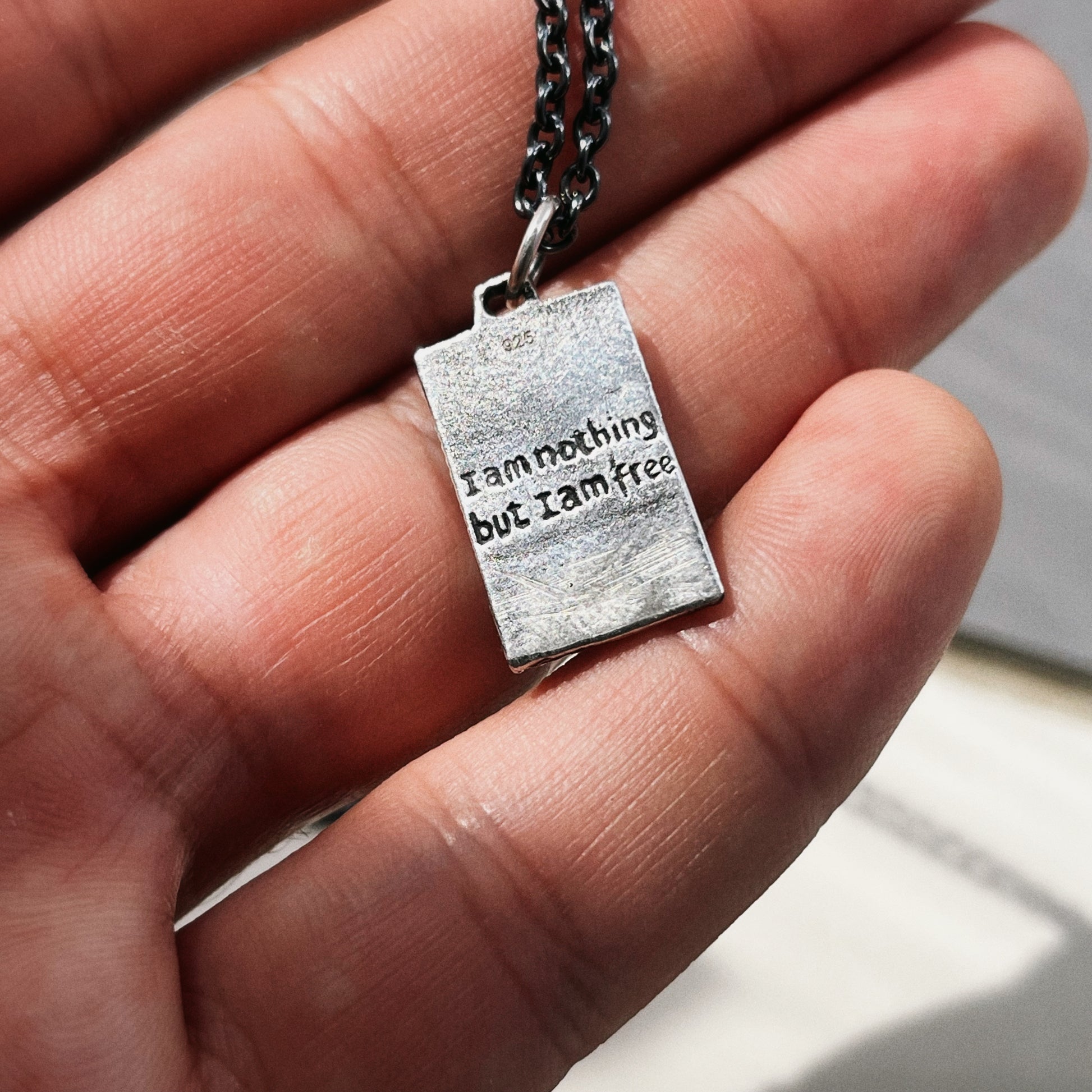 On the backside of this pendant I decided to hand-engrave the words: "I am nothing but I am free". In a day and age where people are obsessed with titles, achievements, and fitting into the molds of society...this is my quiet protest.