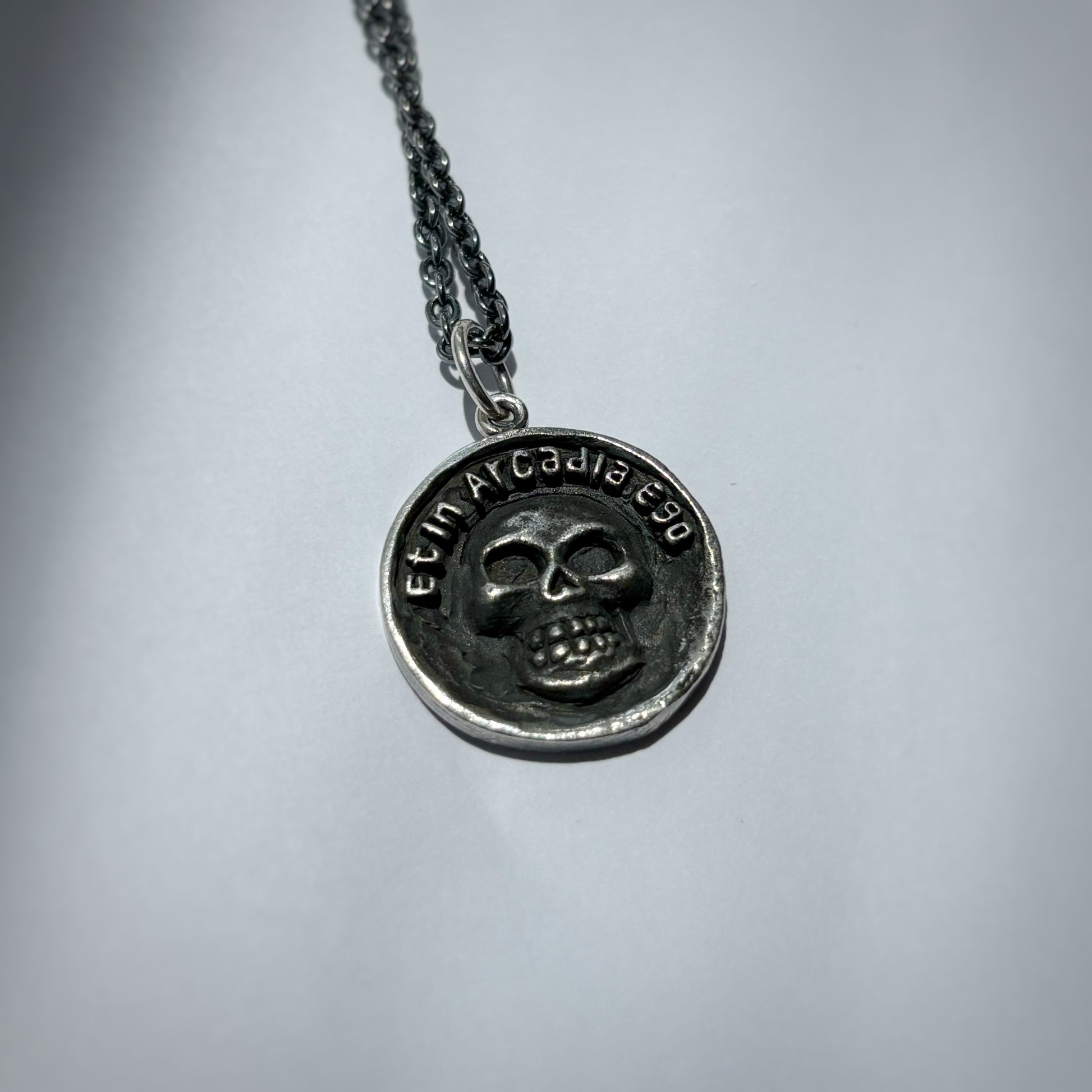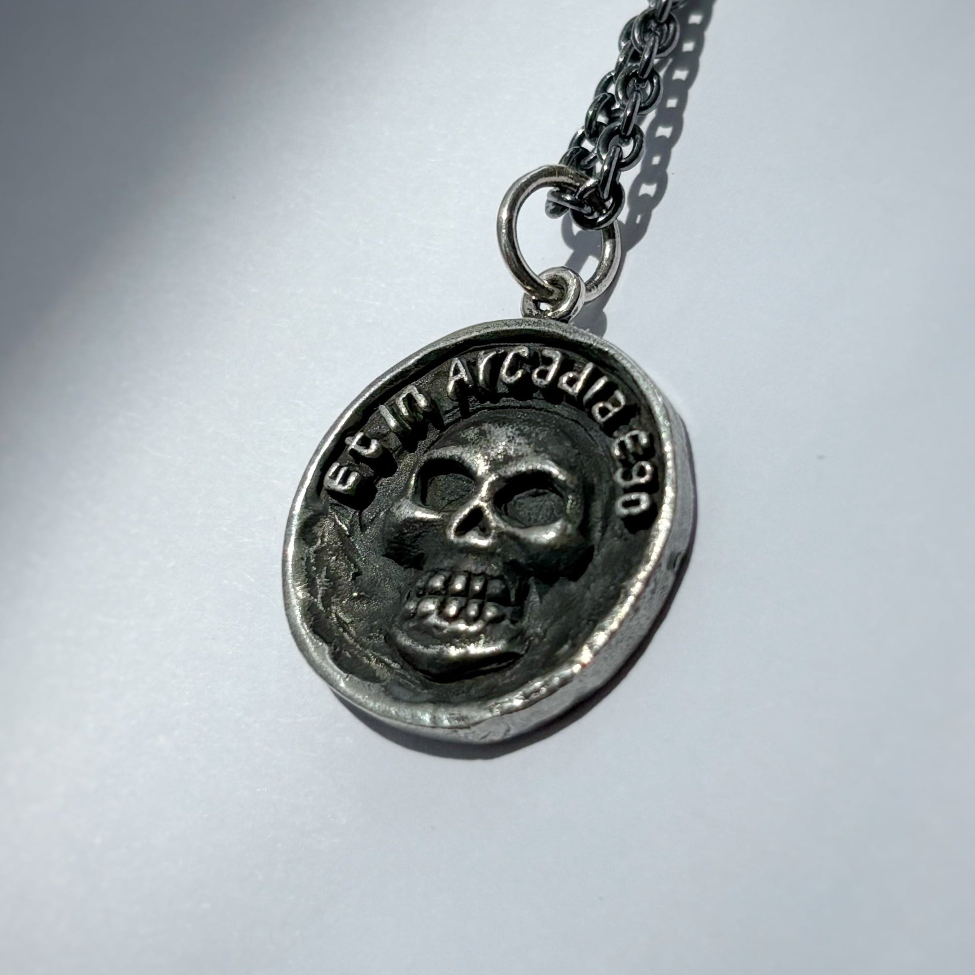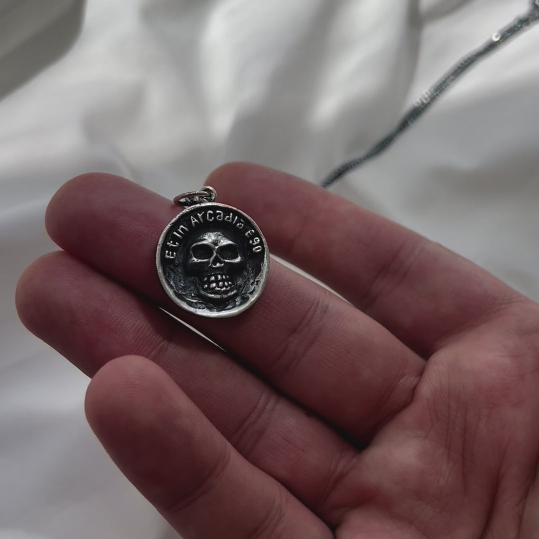 Wear this pendant as a daily memento mori. Let is serve as a constant reminder to live life to the fullest, because nothing is ever promised. Even in Arcadia, death is always present.