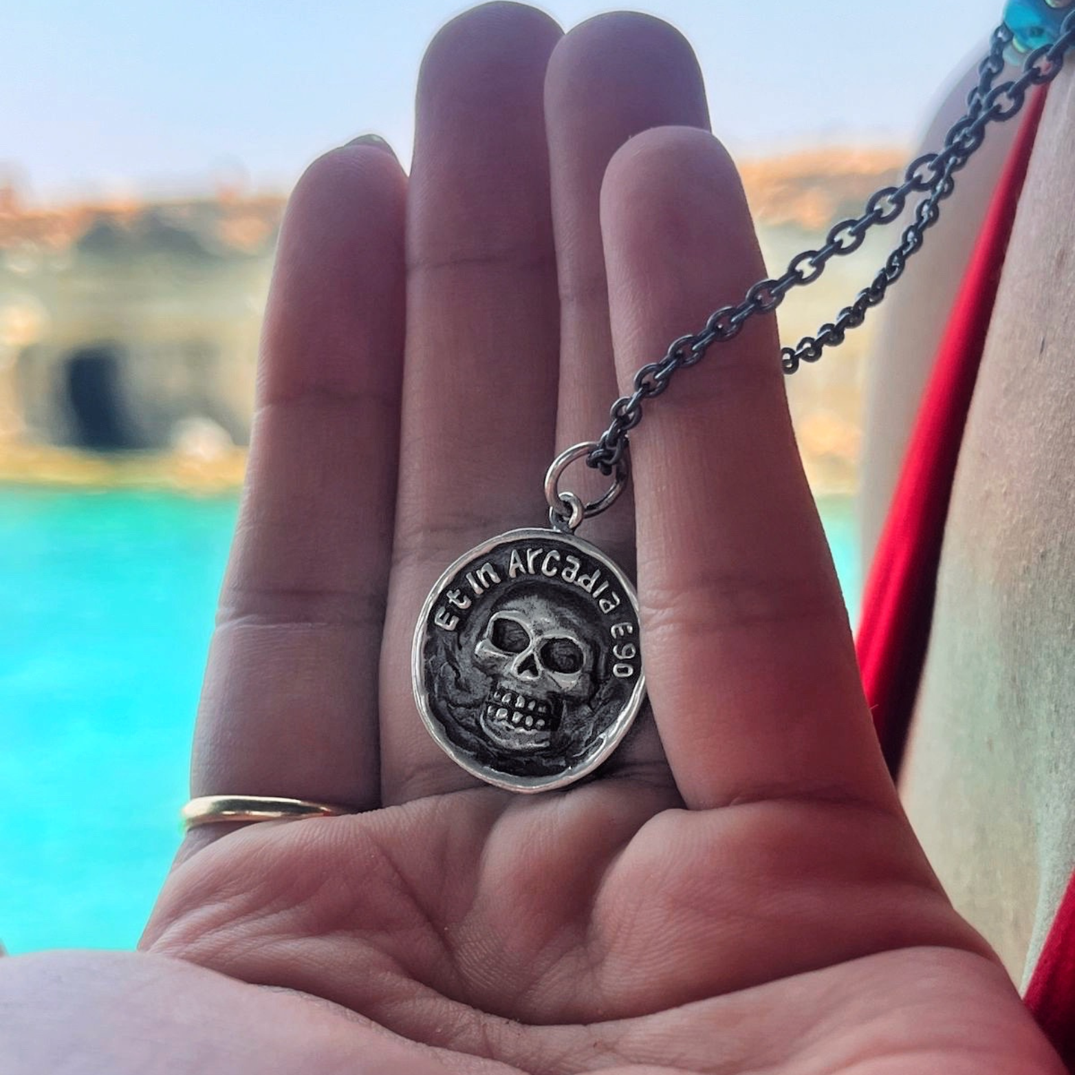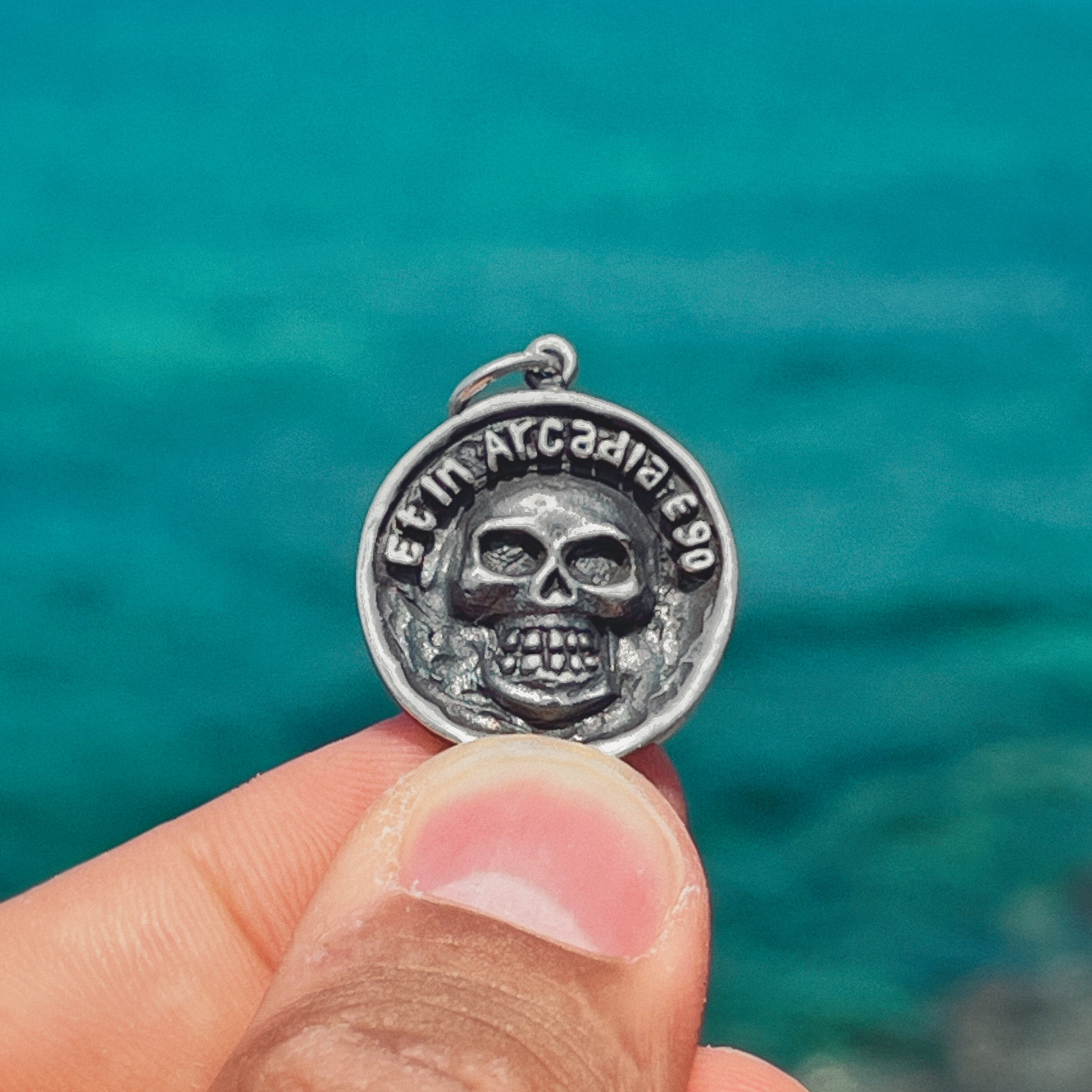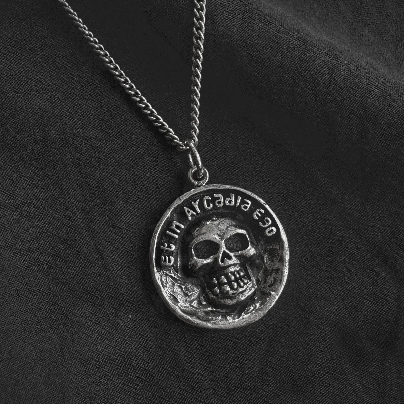 Wear this pendant as a daily memento mori. Let is serve as a constant reminder to live life to the fullest, because nothing is ever promised. Even in Arcadia, death is always present.