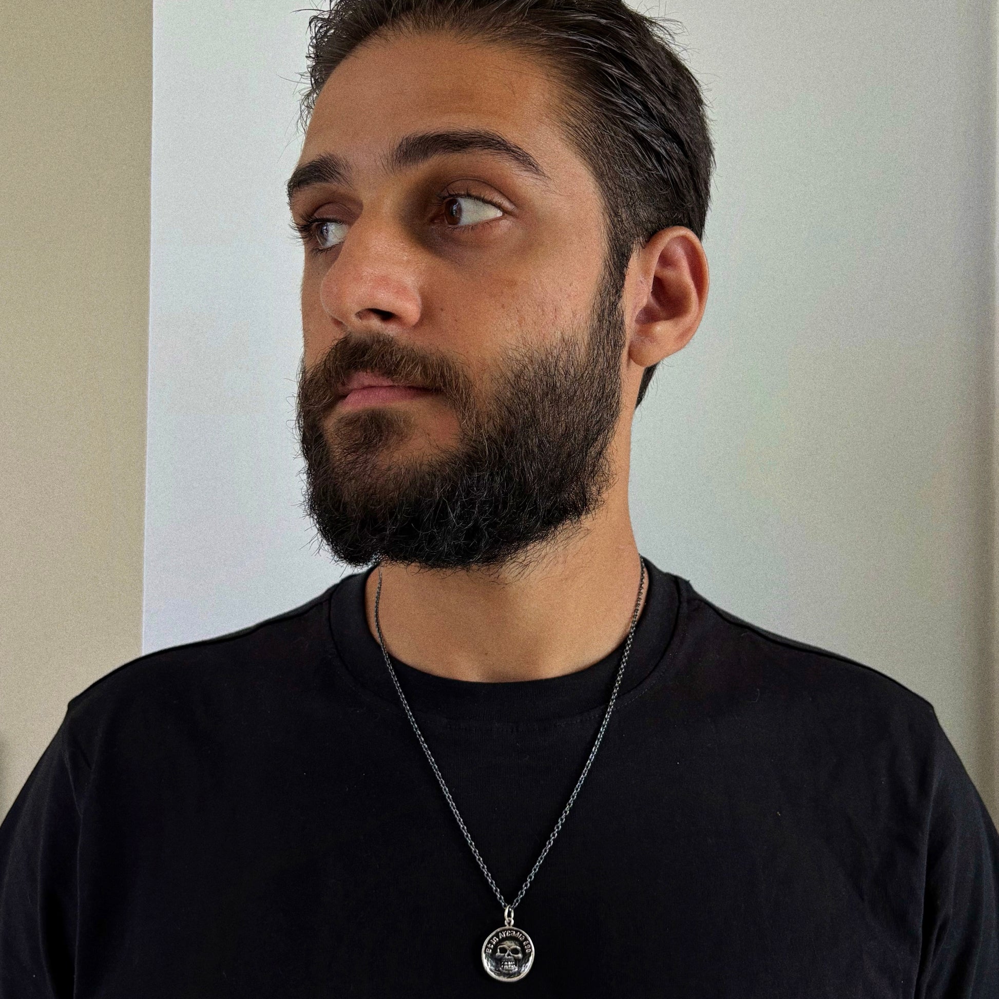 Men’s Necklace Et in Arcadia Ego Pendant in Oxidized Sterling Silver