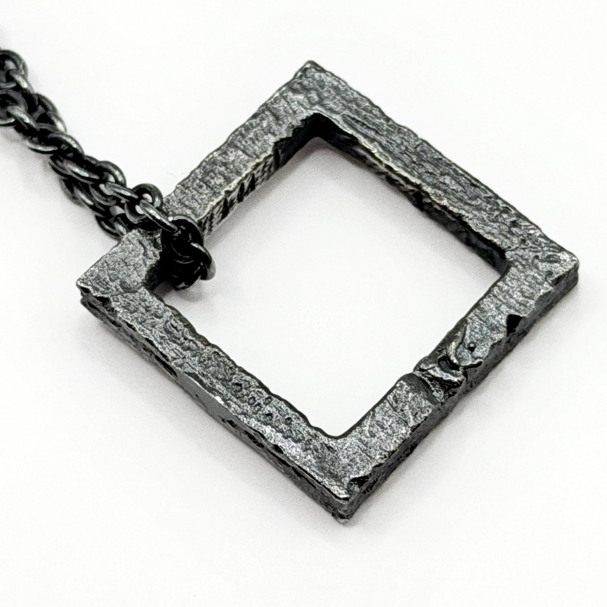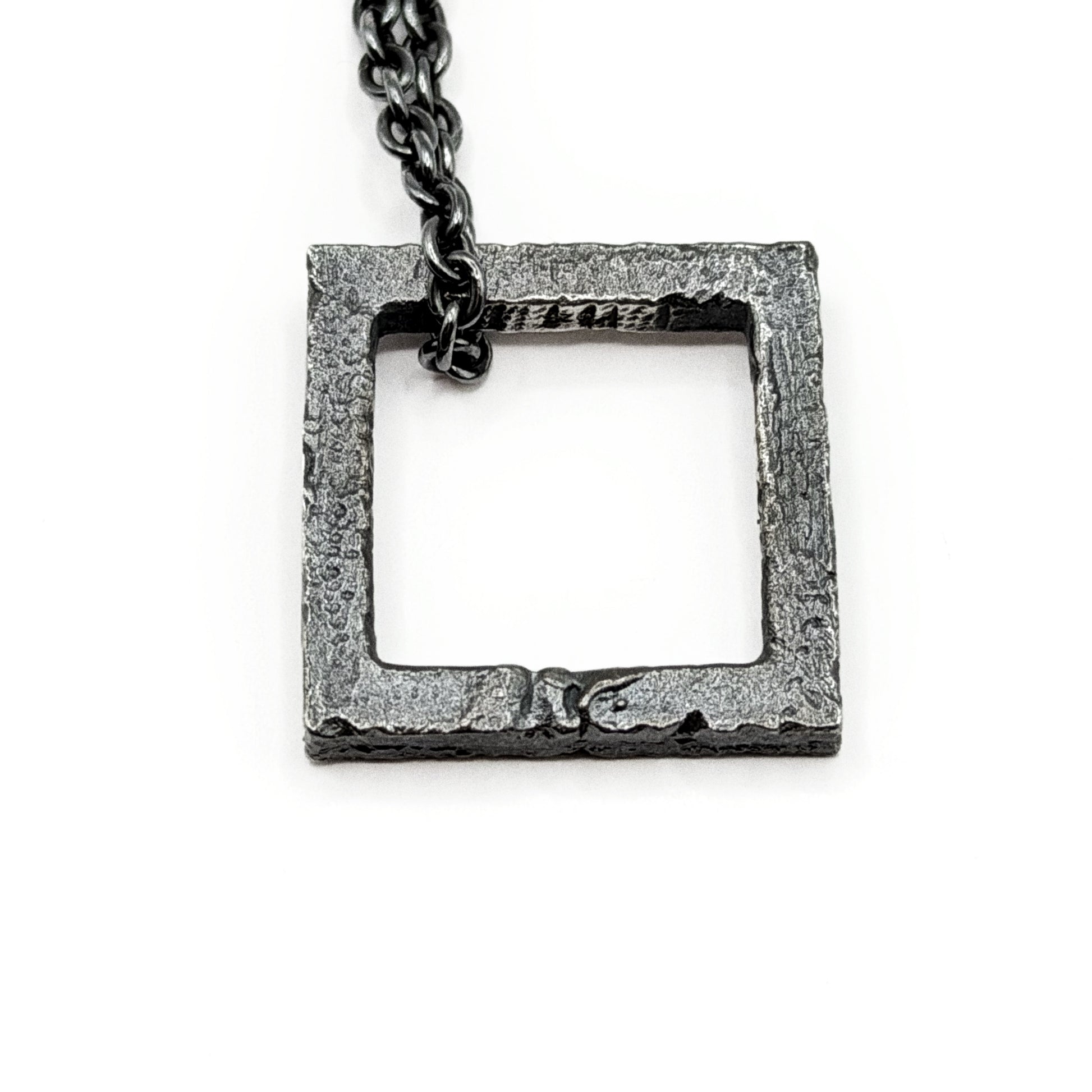 Introducing our rustic square pendant necklace, handcrafted in solid 925 sterling silver with a rugged, textured finish. Suspended from an oxidized chain, the square pendant reminds us that often times there is a certain beauty in simplicity. Handmade with intention, this silver square necklace is versatile enough for everyday wear yet timeless enough to hold meaning. A piece that feels grounded, balanced, and calm: the perfect gift for those who appreciate the art of less.