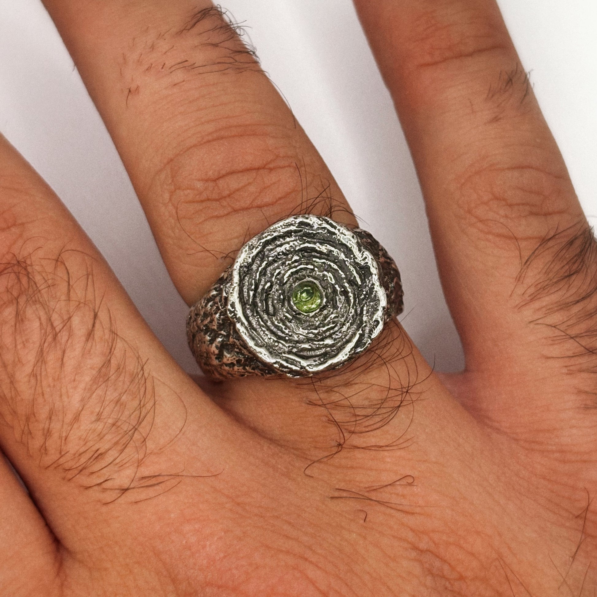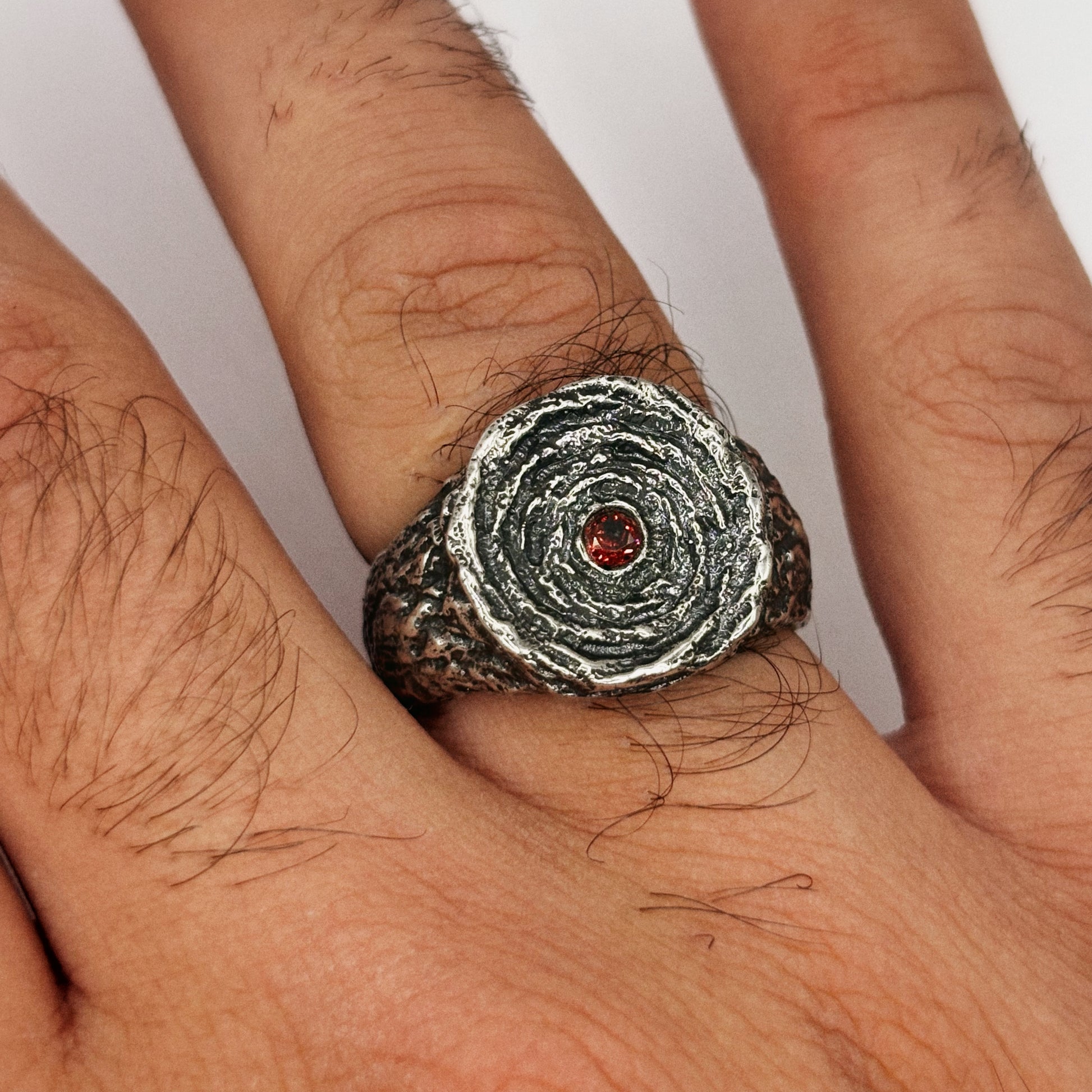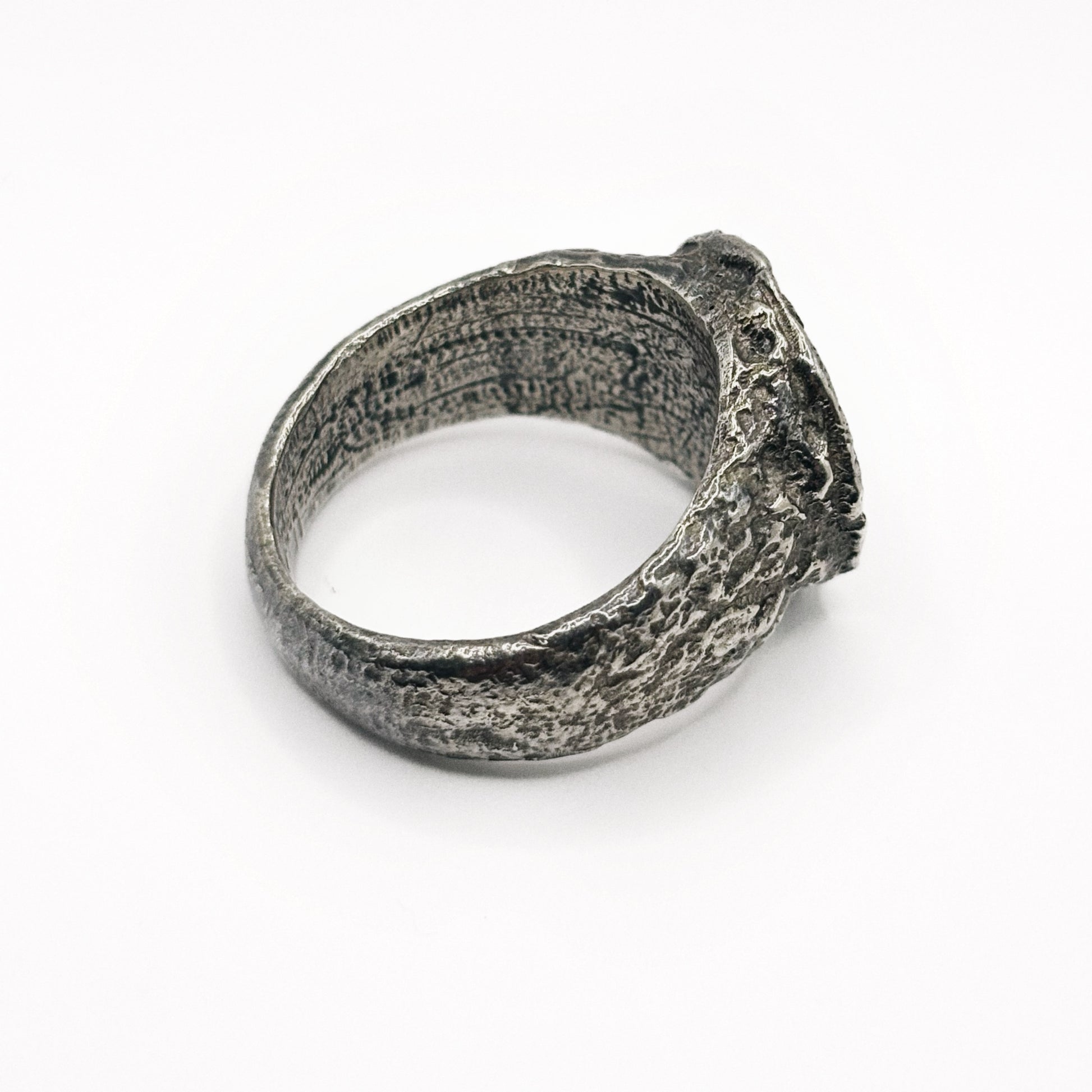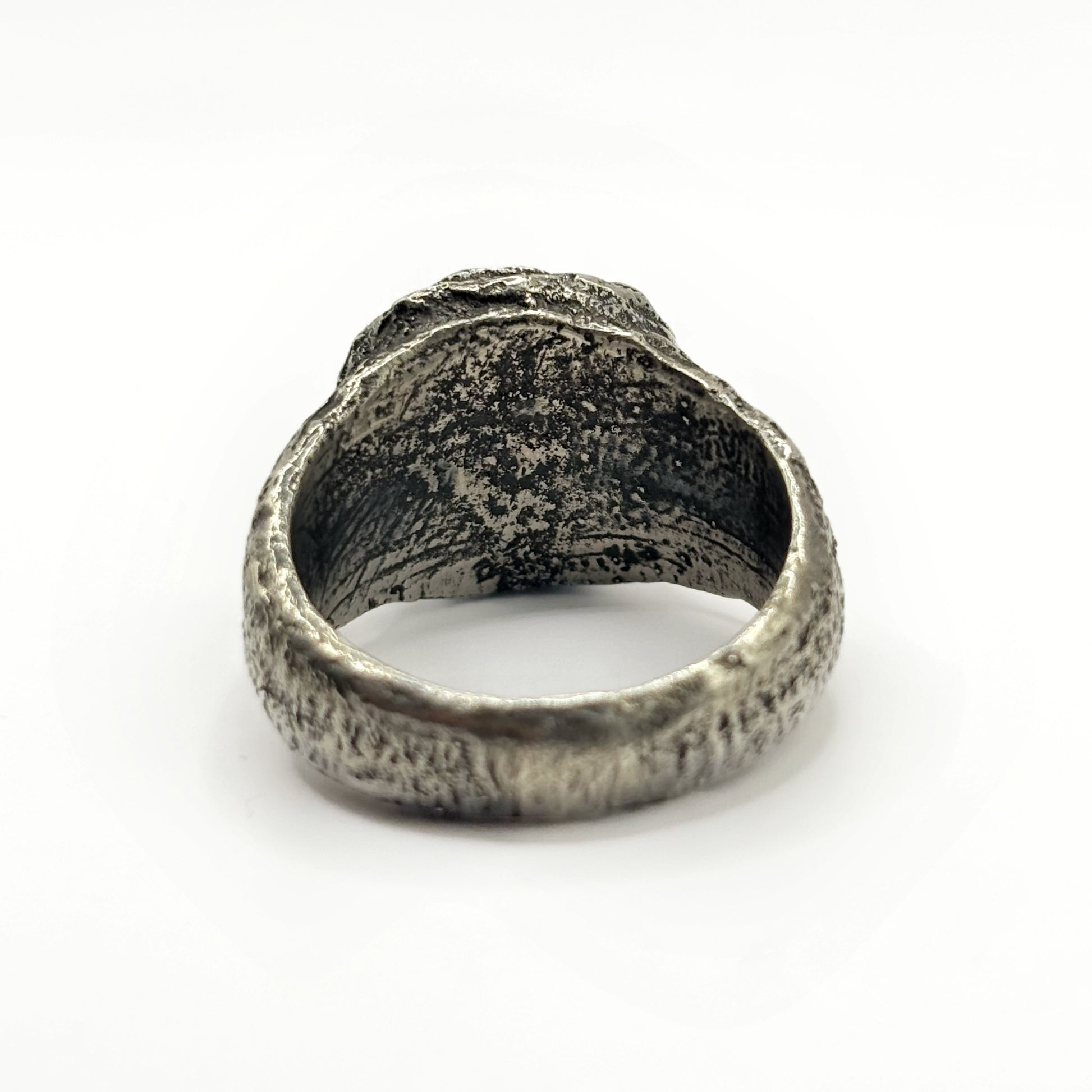 Introducing our bold and chunky Abyss ring, featuring a natural semi-precious gemstone set in a solid oxidized 925 sterling silver band for a rugged and timeless appearance. This is a piece that feels ancient, as if it carries a story from the past.