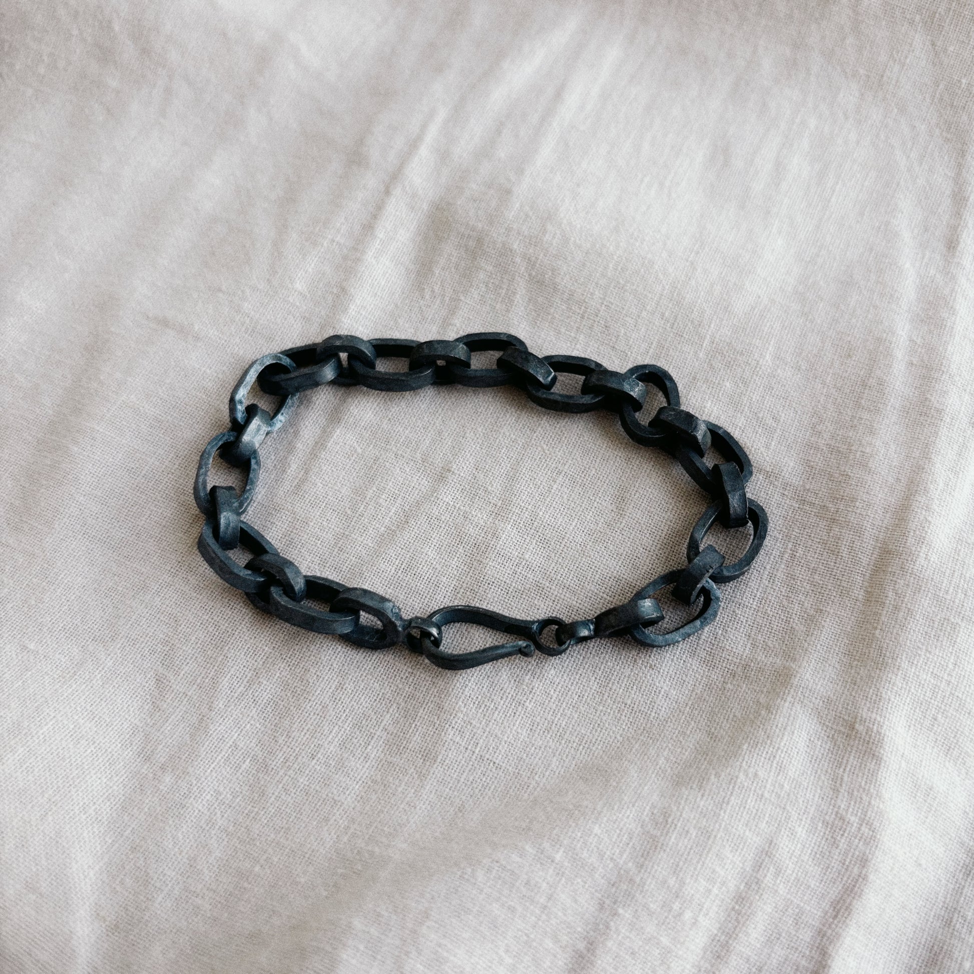Introducing our chunky chain bracelet, handcrafted in solid 925 oxidized sterling silver for a rugged, timeworn look. This heavy link bracelet is designed to feel raw and full of quiet strength. I’ve always loved the kind of jewelry that feels like it’s been through something: weathered, imperfect, but full of character. This piece was born from that idea. It’s heavy, minimal, and honest. The kind of bracelet that doesn’t try too hard, but says a lot without words. A minimalist statement piece for men who value simplicity, weight, and authenticity.